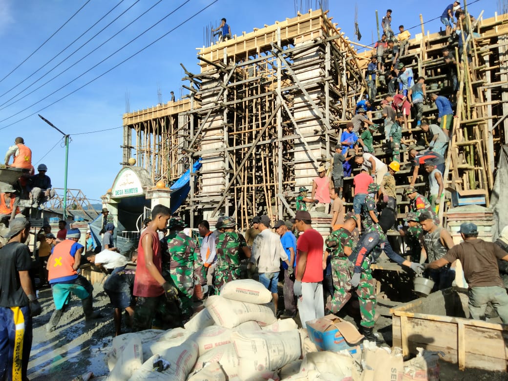 NEWSGAPI.com- Wujud nyata kemanunggalan TNI dan Rakyat. Anggota Koramil 1508-02/Galela membantu warga lakukan pengecoran...