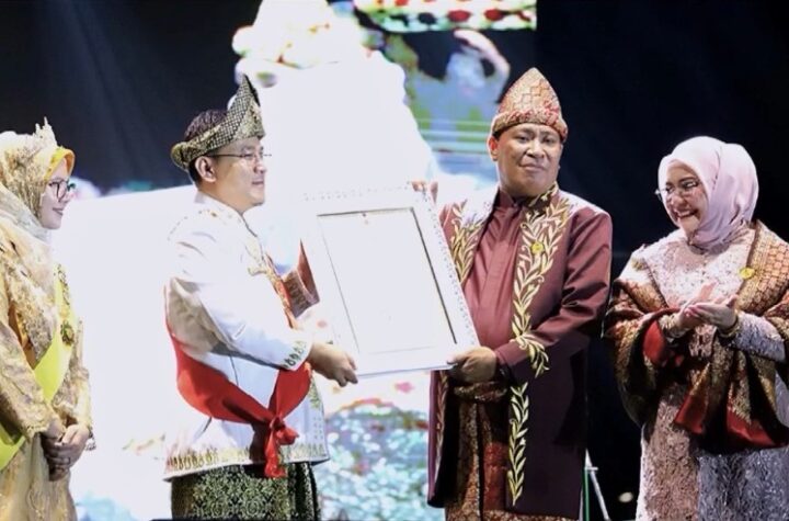 Momen mendiang Bupati Usman Sidik saat didampingi Istrinya Eka Dahliani Usman menerima penghargaan di...