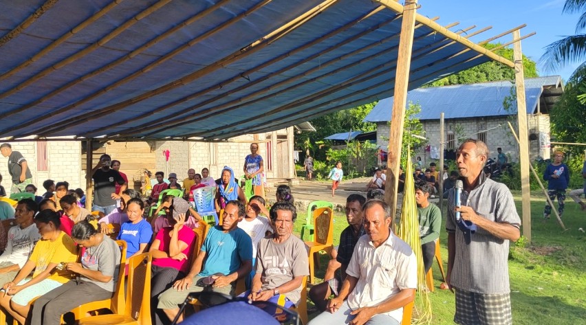 Emos Kurama, warga Dusun Posiposi saat menyampaikan komitmen warga ke Paslon Rusihan-Muhtar