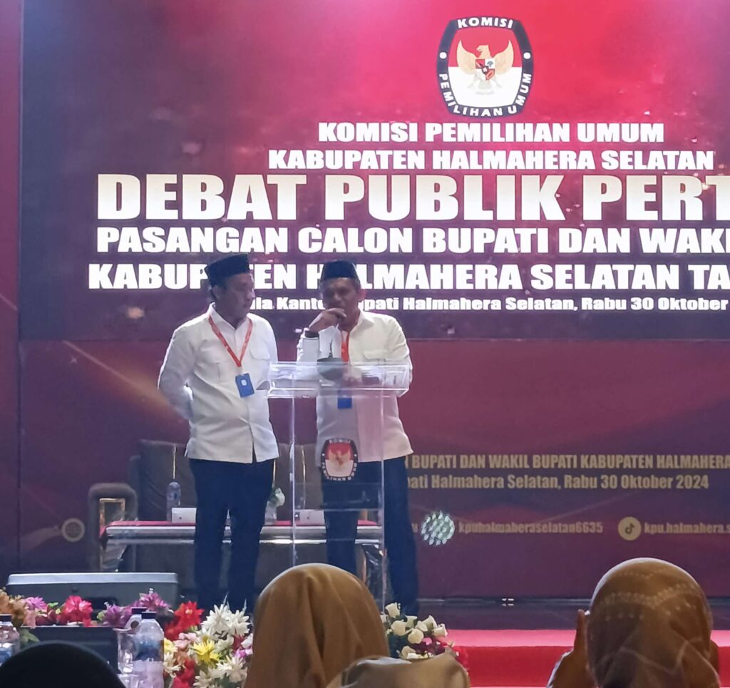 NEWSGAPI.COM — Pasangan calon Bupati dan Wakil Bupati Kabupaten Halmahera Selatan, Rusihan Jafar dan Muhtar Sumaila sukses memukau publik dalam debat kandidat terbuka perdana yang digelar Komisi Pemilihan Umum Daerah (KPUD) Halsel.