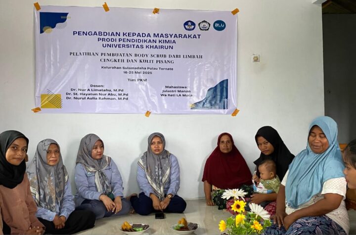 Tim PKM Unkhair menyajikan body scrub daru olahan limbah kulit pisang dan cengkeh Ternate...