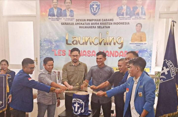 Launching les Bahasa Mandarin di buka dengan penandaan pemukulan gong oleh Sultan Bacan, pengurus...
