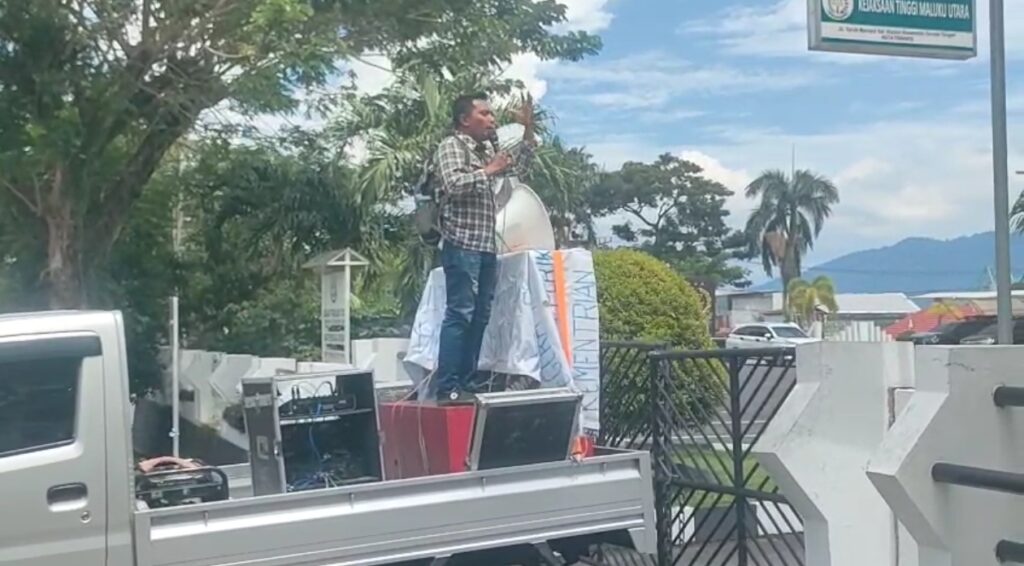 Ternate|Gerakan Pemuda Marhaenis (GPM) Maluku Utara menggelar aksi unjuk rasa di depan kantor Kejaksaan Tinggi Provinsi Maluku Utara pada Kamis (18/9). Aksi ini dilakukan untuk mendesak aparat penegak hukum mengusut tuntas kasus Halsel Ekspres yang diduga melibatkan mantan Bupati Halmahera Selatan, Muhammad Kasuba.