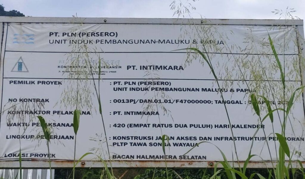 “Proyek ini merupakan bagian dari kegiatan PT PLN (Persero) Unit Induk Pembangunan Maluku & Papua, dengan PT Intimkara sebagai kontraktor pelaksana. Berdasarkan papan proyek, waktu pelaksanaan ditetapkan 420 hari kalender, namun hingga awal November 2025, progres pekerjaan belum menunjukkan tanda-tanda penyelesaian,” ujar Sudarmono.