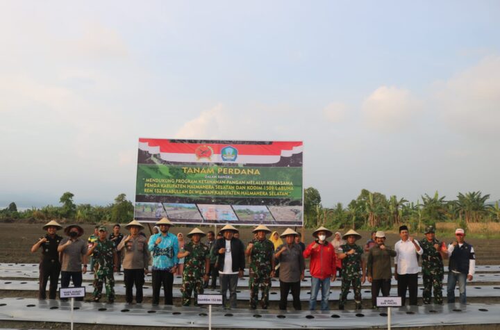 Danrem 152/Baabullah Brigjen TNI Elkines Villando Dewangga beserta jajaran menggelar foto bersama Bupati Usman...